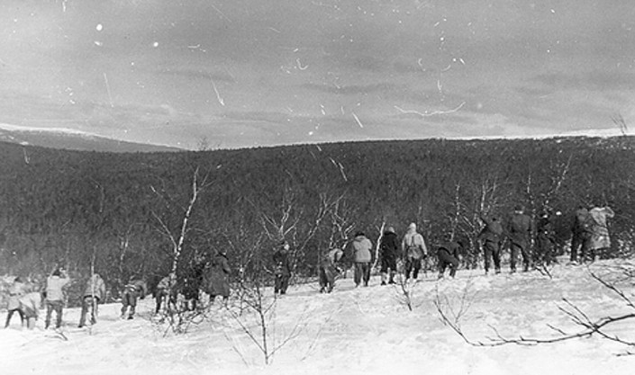 Пропавших туристов искали студенты УПИ и военные. Поисковики шли по перевалу шеренгой, каждый метр протыкая снег щупами. Фото из архива фонда памяти группы Дятлова/kp.ru