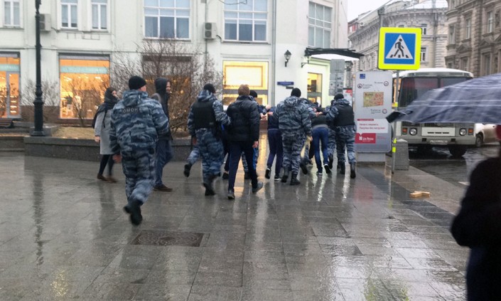 Активистов движения "СтопХам" задержали в Москве после того, как они попытались наклеить стикер на служебный автобус ОМОНа, сообщает "Блокнот".