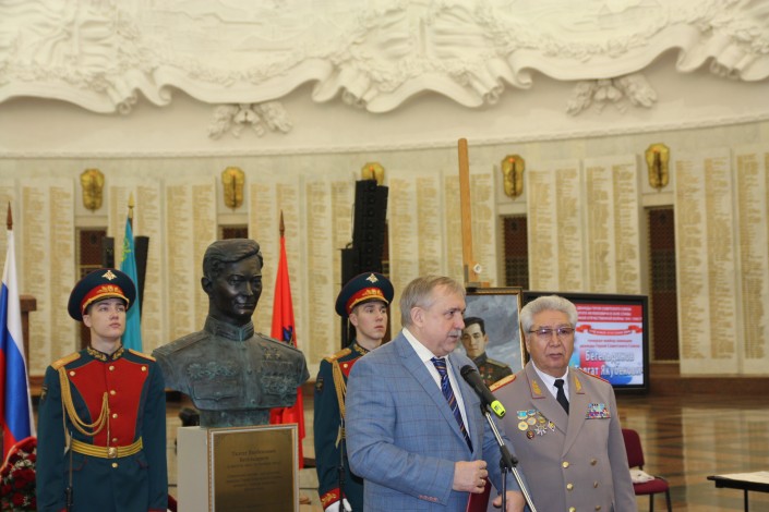 Казахстан передал музею в Москве бюст легендарного летчика Талгата Бегельдинова, передает корреспондент Tengrinews.kz. Торжественная церемония прошла в Центральном музее Великой Отечественной войны на Поклонной горе.