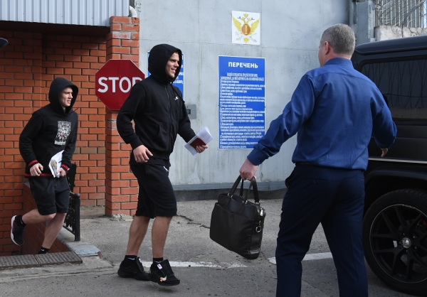 Футболист Павел Мамаев у КПП исправительной колонии №4 города Алексеевка Белгородской области.