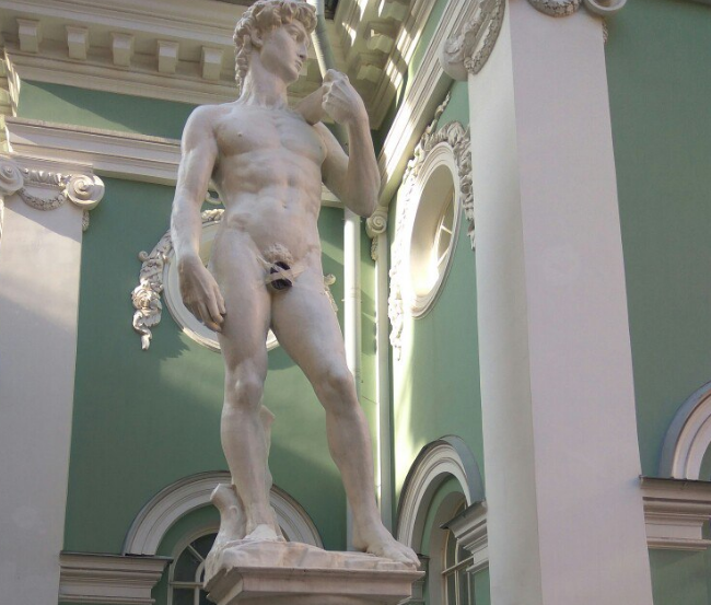 Наготу статуи Давида в Петербурге прикрыли кепкой