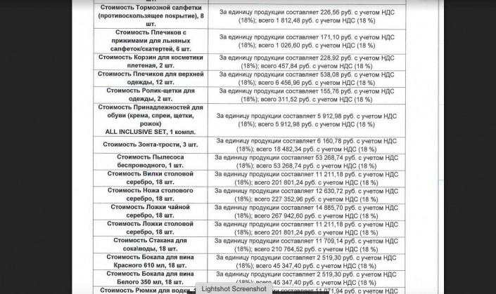 Далее идет список закупок "Роснефти" и отмечается, что все цены можно проверить в этом протоколе. "Очень, очень хочется, чтобы все в России, у кого зарплата меньше, чем стоимость салфетницы, приобретаемой государственной "Роснефтью" увидели ролик об этой закупке", - говорится в статье.