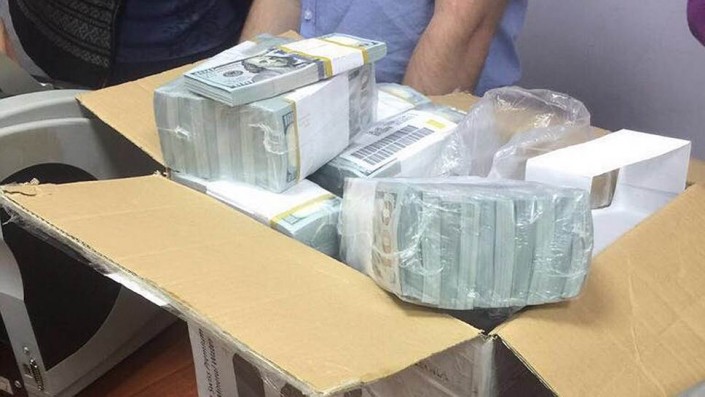 Портал Znak.com сообщает, что, согласно данным минфина США, один миллион долларов в 100-долларовых купюрах весит около 10 килограммов. Соответственно, 120 миллионов долларов должны весить около 1 200 килограммов. Согласно данным сайта Pagetutor, 100 миллионов долларов в 100-долларовых купюрах выглядят примерно вот так: