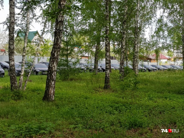 Абсолютно все иномарки черного цвета, внешне абсолютно одинаковые. Машины представительского класса стоят прямо под открытым небом и деревьями, припаркованы на участке рядом с озером Смолино.