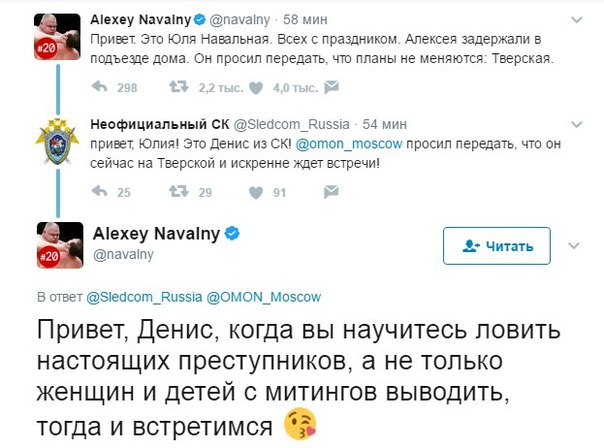 12 июня в Москве, Санкт-Петербурге и других крупных городах России прошли митинги против коррупции, которые совпали с празднованием Дня России. Акция протеста была объявлена оппозиционным политиком Алексеем Навальным, его в этот день задержали у подъезда собственного дома, а затем арестовали на 30 суток.