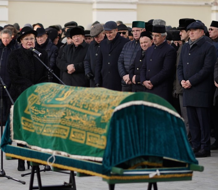 Почтить память умершей в мечеть Марджани в Казани пришли не менее 300 человек, в том числе представители органов власти. Во время траурной церемонии Минтимер Шаймиев с нежностью вспомнил последние дни жизни Сакины ханум и попросил хранить о ней добрую память.