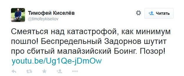 Задорнов пошутил о сбитом малайзийском Boeing