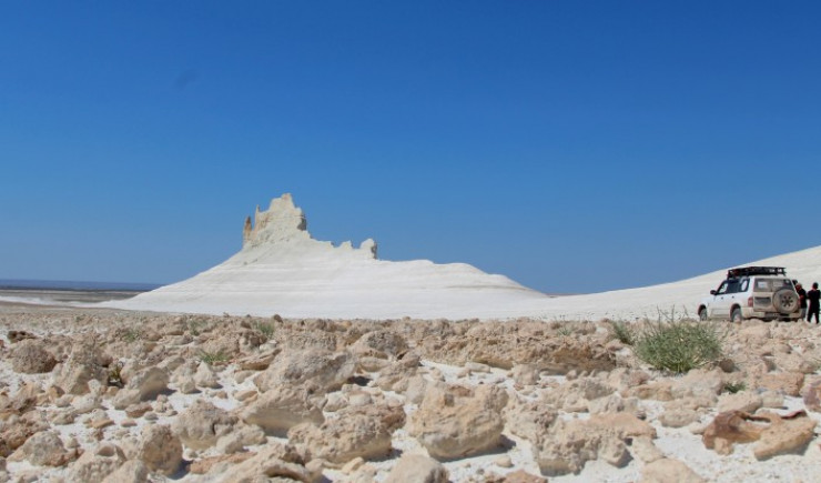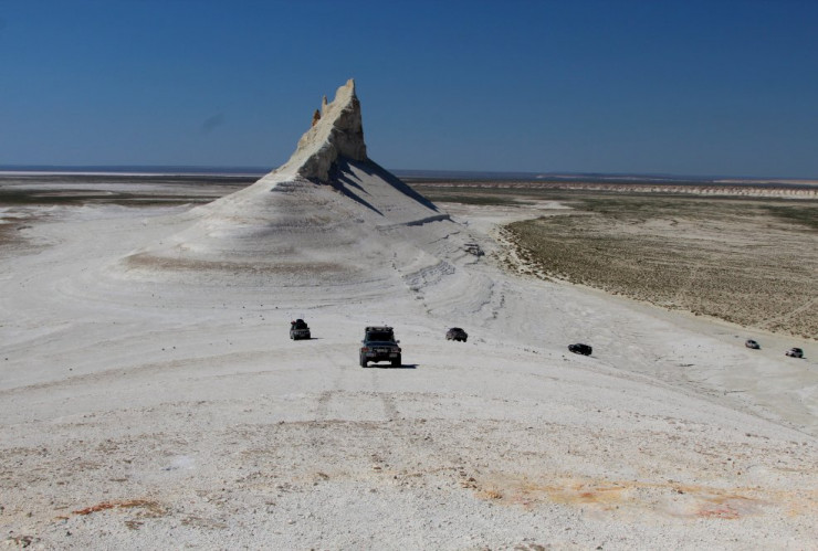 Чтобы добраться до Бозжыры, путешественникам придется проехать не одну сотню километров по такыру - это особая форма рельефа, образуемая при высыхании засоленных почв в пустынях и полупустынях. В сухом состоянии такырные почвы очень прочные и ровные, благодаря чему в сухой период года в пустыне по такырам можно ездить на автомобилях достаточно быстро, почти как по асфальту. Но стоит пойти дождю, и последствия для путешественников могут быть самыми непредсказуемыми.