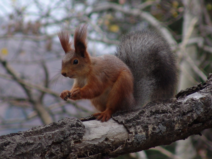 Суетливые белки постепенно меняют свои пушистые рыжие шубки на более серые, продолжая неустанно собирать запасы на зиму.
