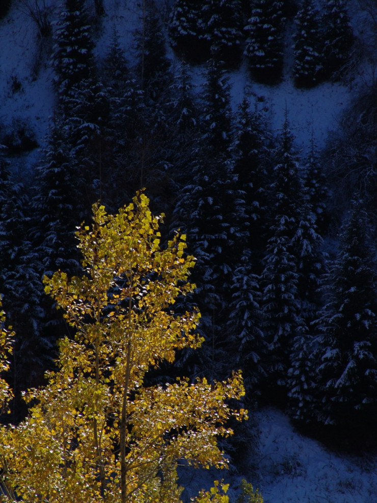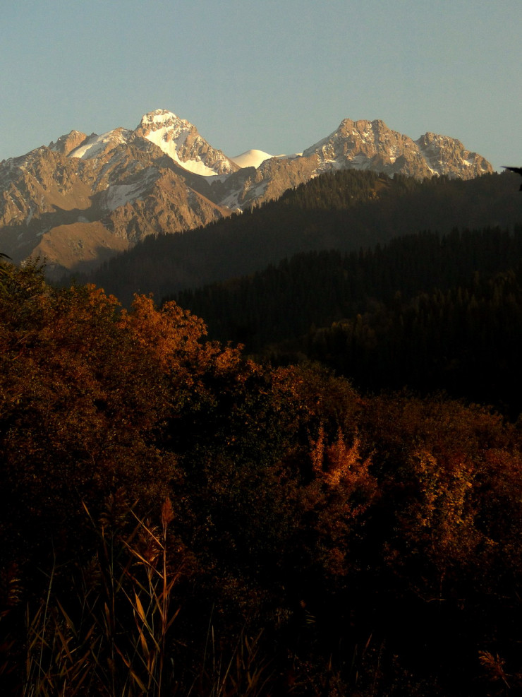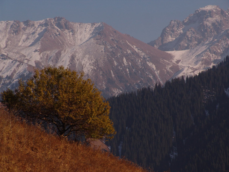 Осенние краски медленно сползают вниз как по холсту, спускаясь все ниже по горным склонам Заилийского Алатау.