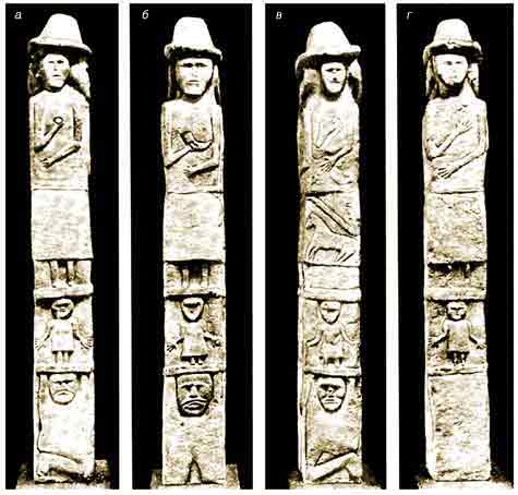 В августе 1848 года в реке Збруч (приток Днестра) на западе Украины была найдена довольно странная каменная скульптура, которую нарекли Збручским идолом. Она была выполнена из серого известняка в форме четырехгранного столба высотой 2,67 метра. Дата создания идола - приблизительно X век.