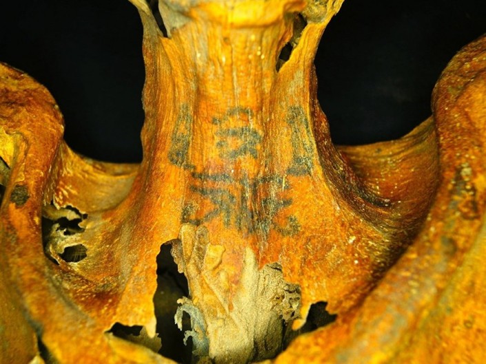 Археологи нашли татуировки относительно случайно. Изучая останки женщины, Остин случайно заметила необычные полосы на ее шее, которые она изначально приняла за рисунок, нанесенный на тело уже после мумификации.