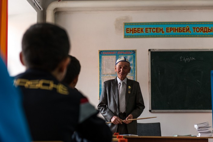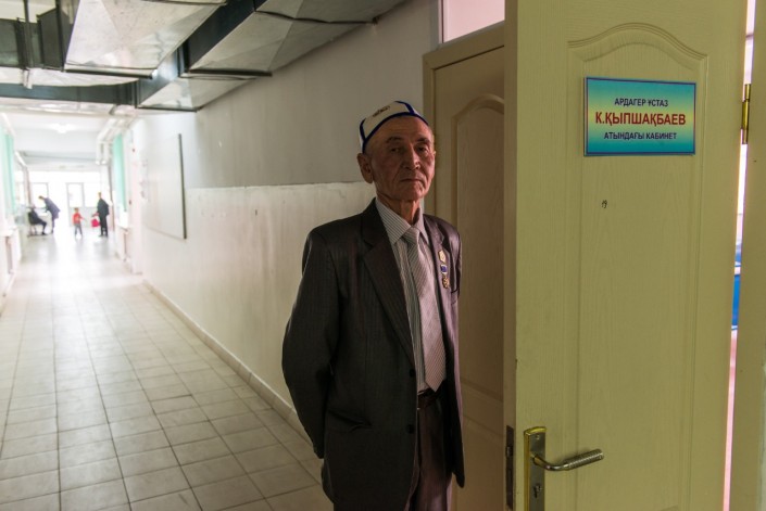 Әулетіндегі ұстаздардың жалпы еңбек өтілі үш ғасырдан асқан ардагер мұғалім Кенжебек Қыпшақбаев. © Тұрар Қазанғапов