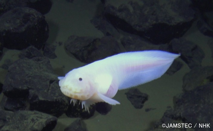 Ученые спустили на дно морской бездны специальный аппарат, оборудованный видеокамерами с разрешением 4К. Они вели съемку на глубинах 7 498 и 8 178 метров. Приманкой для глубоководных обитателей служила обычная скумбрия.