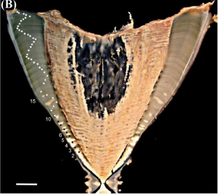 Ученые пришли к выводу, что альтернативным способом определения их возраста является подсчет колец позвонков, так как по мере взросления они увеличиваются в количестве. Однако ученые до сих пор не могли сказать с уверенностью, с какой скоростью эти кольца формируются.