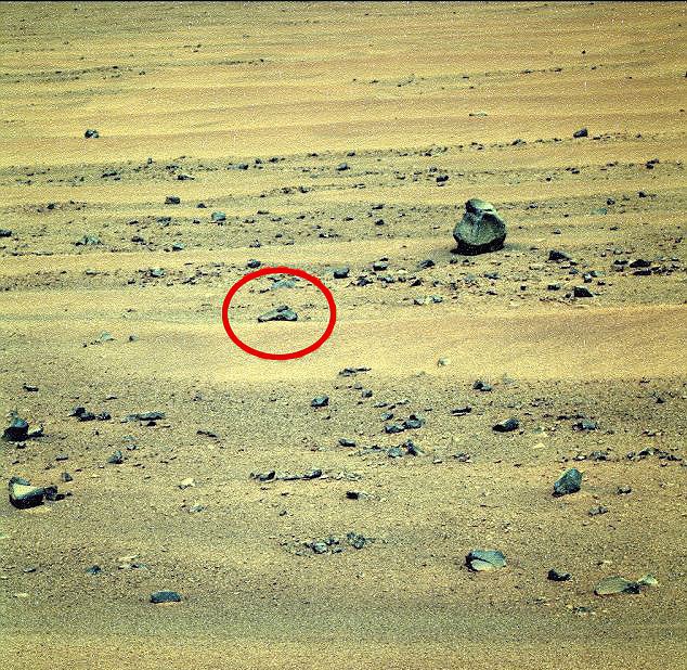На фотографиях, присланных на Землю американскими марсоходами Curiosity и Opportunity, охотники за паранормальными явлениями продолжают находить новые странные объекты, пишет британская газета Daily Mail.