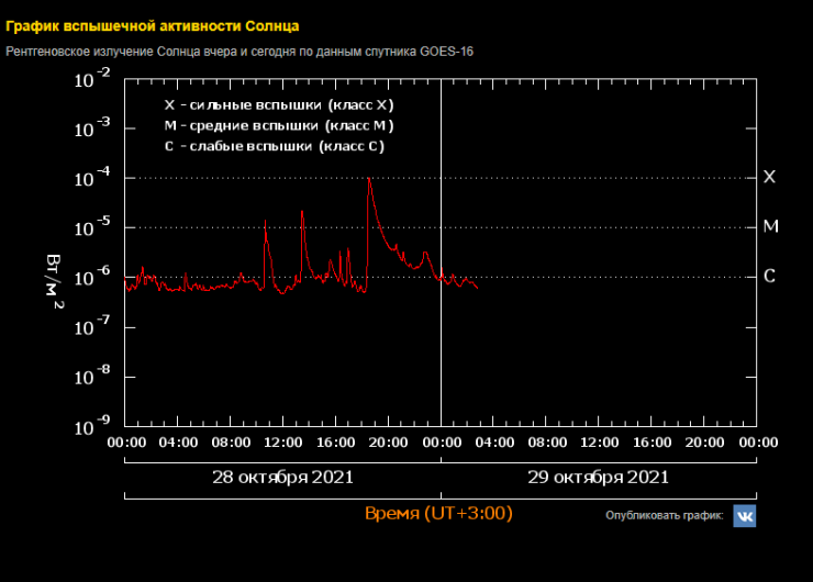 На Солнце в четверг, 28 октября, произошла вспышка максимального класса Х1.0. Об этом сообщили в Лаборатории рентгеновской астрономии Солнца ФИАН (РФ), передает Tengrinews.kz со ссылкой на "Известия"