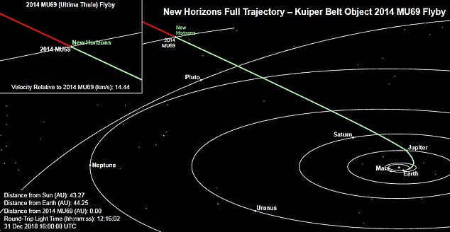 Станция совершила 140-секундный пролет мимо объекта 2014 MU69. Собранные в ходе сближения данные должны показать, из скольких в действительности тел состоит объект, есть ли у него газовая кома, рассказать о геологических особенностях, топографии и составе поверхности. Передача собранных данных на Землю продлится до осени 2020 года.