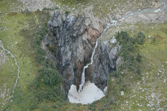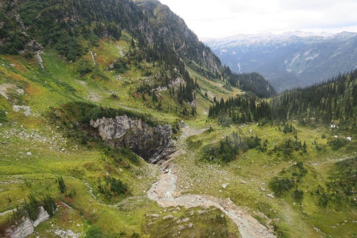 Впервые ее увидели с вертолета в апреле этого года в Провинциальном парке Уэллс-Грей (Gray Provincial Park). На протяжении большей части года пещера покрыта снегом. Теперь из-за глобального потепления снежный покров постепенно исчезает, и гигантское углубление в земле случайно заметили представители природоохранного министерства Канады, проводившие с воздуха подсчет оленей.