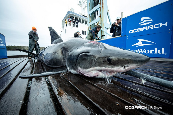 Поймана белая акула со следами укуса "кого-то очень большого" © facebook/OCEARCH