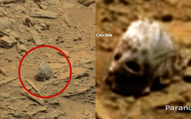 На снимках, сделанных марсоходом Curiosity, уфологи обнаружили очередной странный объект. Предмет, привлекший внимание наблюдателей, удивительно похож на череп инопланетянина или снежного человека, пишет Metro.