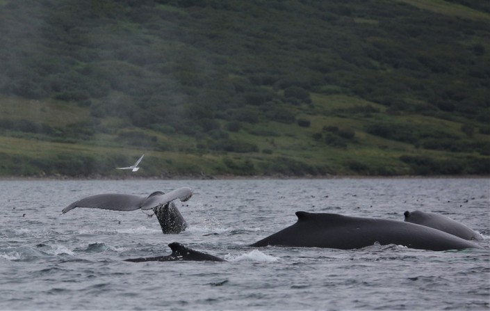 Кроме того, специалисты установили, что в акватории пролива Сенявина встречаются горбачи, которые размножаются на Гавайях и у берегов Мексики. Двух горбачей видели ранее на Командорских островах и в заливе Креста.