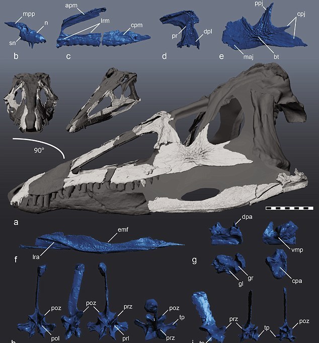 Чтобы реконструировать череп доисторического хищника, специалисты использовали 3D-сканер с высоким разрешением. Увидев, как выглядел череп животного, ученые назвали его именем, характерным для фильмов ужасов. "У него тонкий, вытянутый череп (длиной не менее 50 сантиметров), десятки острых как бритва зубов - все приспособления, необходимые для того, чтобы срезать мясо с костей жертв", - говорит ведущий автор исследования Линдси Зэнно.