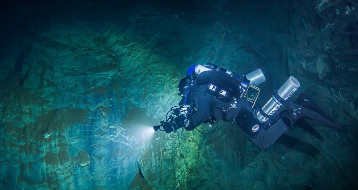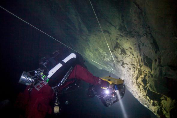 С 2015 года научная команда спускалась более чем на 200 метров, чтобы изучить подводное дно. Однако запаса воздуха и сил у аквалангистов, как правило, не хватало, чтобы доплыть до конца. Тогда ученые запустили в пещеру специальный дистанционный робот ROV, который смог проплыть через узкий проход, достигнув отметки в 404 метра. Потом у робота закончился кабель.