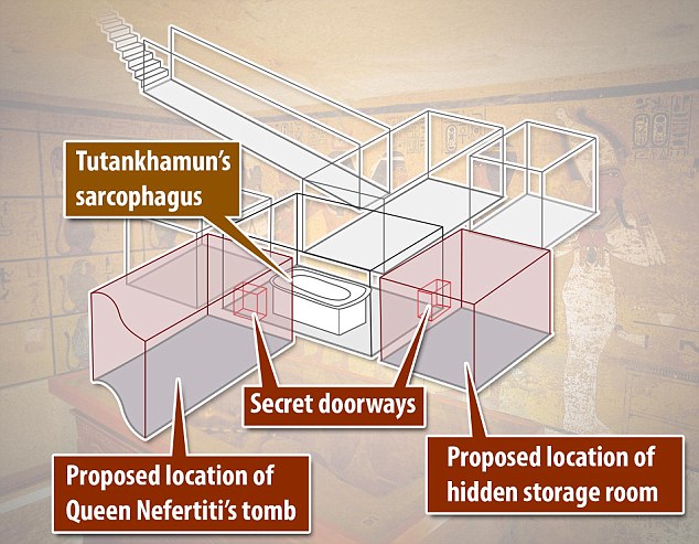 Эту гипотезу выдвинул британский археолог Николас Ривз. В 2015 году он заявил, что обнаружил секретные дверные проемы под слоем штукатурки в усыпальнице фараона Тутанхамона, один из которых может вести в гробницу Нефертити