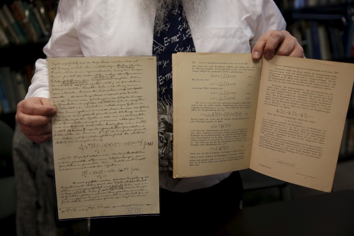 Ученые показывают документы, связанные с гипотезой Альберта Эйнштейна о существовании гравитационных волн.  Фото ©REUTERS