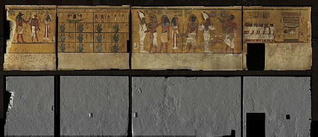 Ученый рассказал, что следы двух потайных порталов нашел, подробно изучая трехмерные снимки гробницы Тутанхамона, сделанные в 2014 году. Дверные проемы не замечали целое столетие из-за того, что стена покрыта фреской, поясняет археолог.