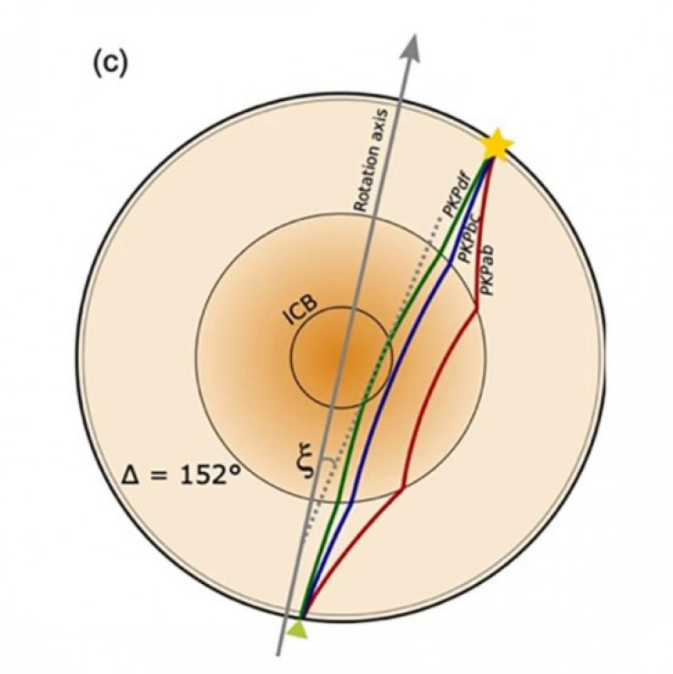 Новое исследование не показало значительных изменений глубины во внутреннем ядре, но обнаружило изменение направления волн на 54 градуса, причем те, что двигались быстрее, проходили параллельно оси.