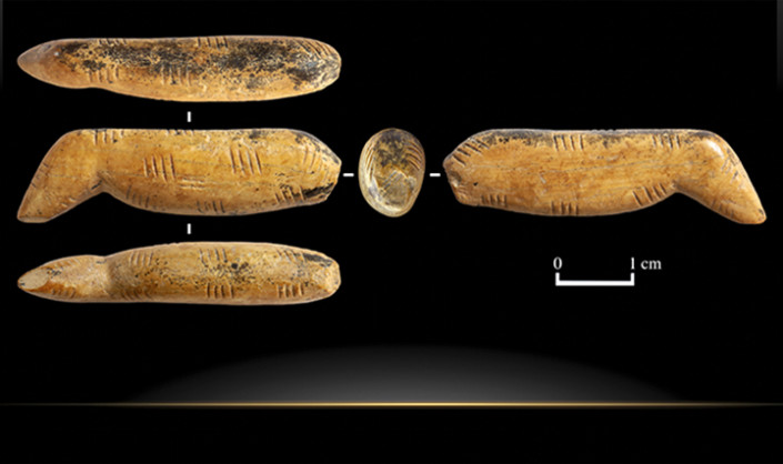 Размер фигурки невелик: 42 миллиметра в длину, 8,5 миллиметра в ширину и 11 миллиметров в толщину. На ее поверхность нанесен орнамент - 18 рядов по четыре насечки.