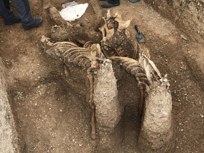 В соседней могиле было найдено тело молодой девушки - возможно, жены или сестры покойного. Еще примерно в 50 метрах археологи обнаружили могилу пожилого мужчины 60-70 лет. Он был закопан вместе с колесницей, запряженной двумя обезглавленными пони.