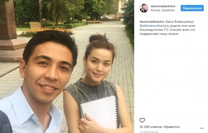 "Хвала Всевышнему! @akbotanurabaykyzy родила мне сына. Альхамдулиллях P.S. Спасибо всем кто поддерживал нашу семью!" - написал Айдаркулов (орфография и пунктуация сохранены).