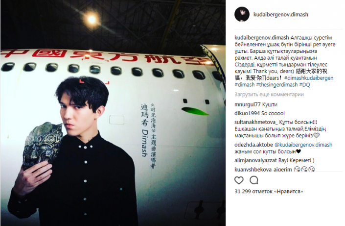 Димаш Кудайберген также поделился с поклонниками фотографией самолета.
