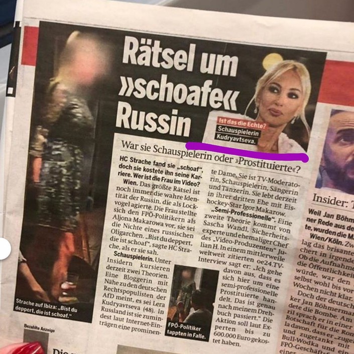 Накануне австрийский таблоид Osterreich Zeitung разместил материал под названием "Была она актрисой или "проституткой"?", сопроводив его фотографией телеведущей. Автор публикации утверждает, что девушкой на скандальной видеозаписи, с которой беседовал Штрахе, была именно Кудрявцева.