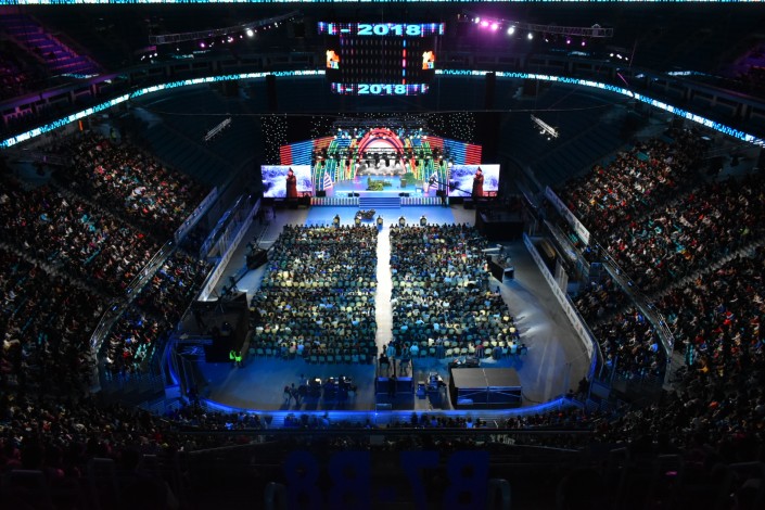 Финал игры КВН проходил накануне в одном из самых больших залов столицы - в ледовом дворце "Барыс Арена".