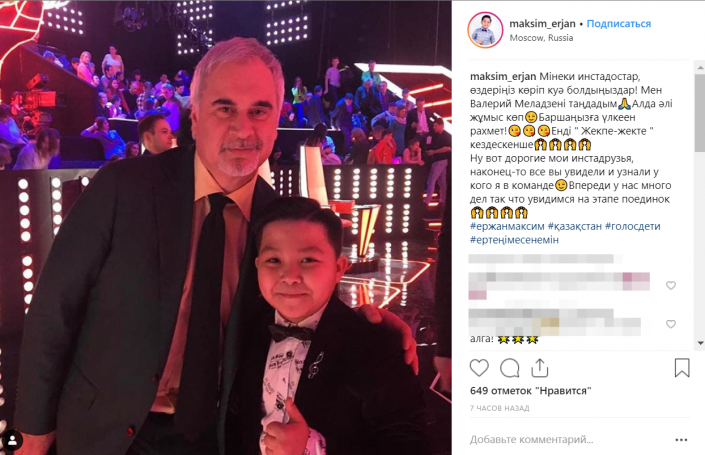 Ранее Ержан Максим и еще четверо казахстанцев прошли кастинг в российском телепроекте "Голос. Дети". Отметим, что Ержан - один из участников национального отбора на Junior Eurovision 2018 в Казахстане.