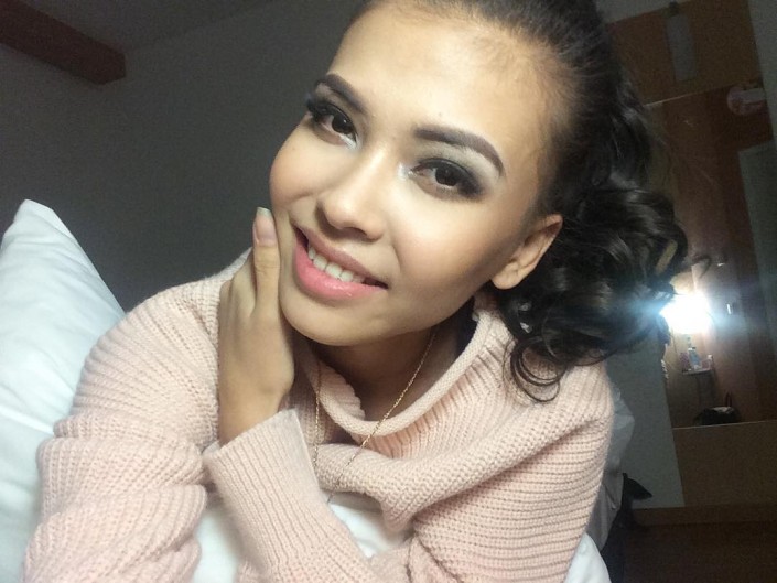 16. Сандина Биссен, финалистка "Мисс Instagram", 20 лет, студентка Казахского национального университета имени Аль-Фараби,  факультета журналистики. Занимается вокалом, танцами.