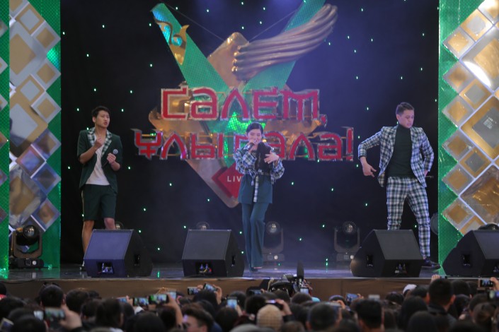 К слову, о звездах. В этот раз организаторы шоу представили небывалый состав. Перед зрителями в ТРЦ и одновременно в эфире Седьмого канала выступили Нагима Ескалиева, Роза Рымбаева, Айжан Нурмагамбетова, Диас Аблаев и молодежная группа BN.