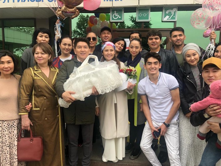 Әнші бүгін әйелін перзантханадан сән-салтанатпен шығарып алды, оны құттықтап өнердегі әріптестері мен туыстары, дос-жарандары келген.
