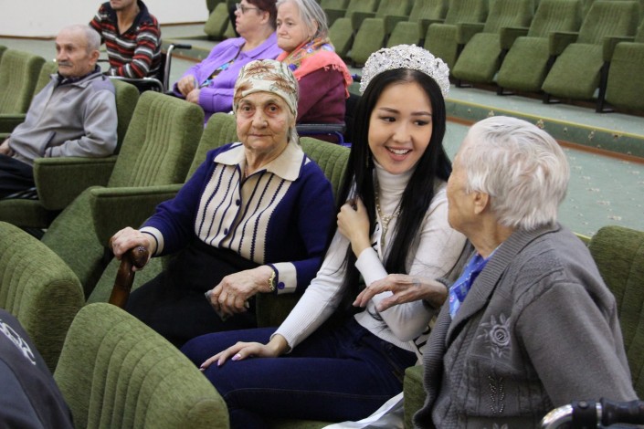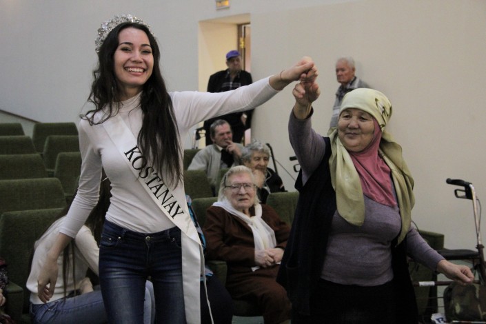 Участницы национального конкурса "Мисс Казахстан-2015" посетили КГУ "Медико-социальное учреждение для престарелых и инвалидов" в Астане, сообщает корреспондент Tengrinews.kz.