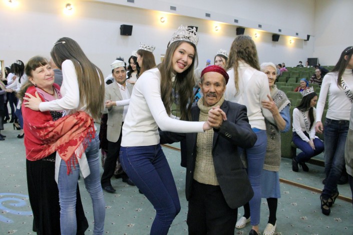 После слов напутствия пожилых людей, начался настоящий праздник. Девушки приглашали дедушек на белый танец, позже все вовсе пустились в пляс.