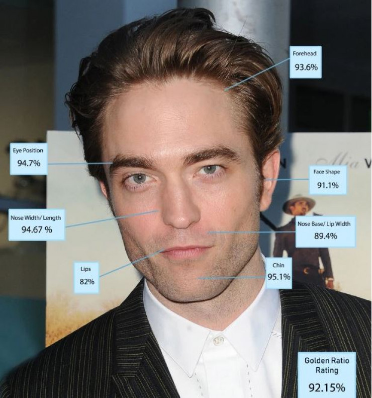 Данные Роберта Паттинсона соответствуют с точностью до 92,15 процента греческому золотому коэффициенту красоты Phi. Соотношение отмечает чью-то физическую привлекательность, принимая во внимание измерения его губ, подбородка, глаз и других черт лица.