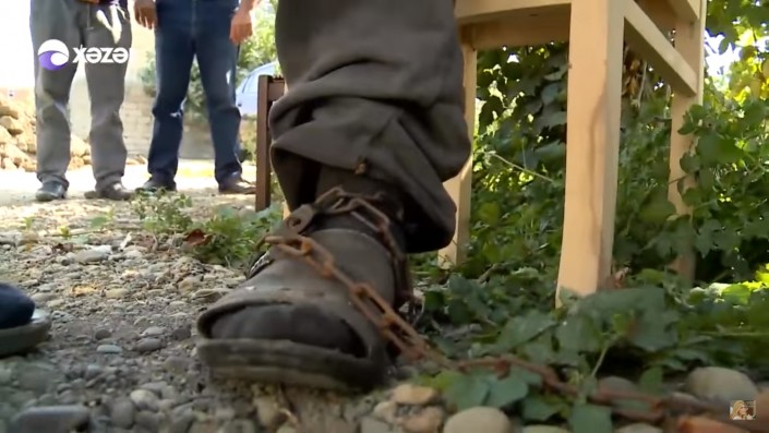 Азербайджанка 20 лет держит родного сына закованным в цепи