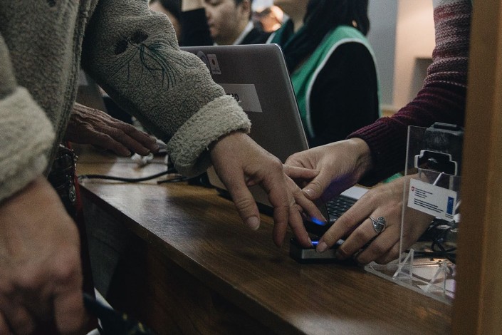 Избиратель идентифицируется с помощью отпечатков пальцев. Фото Tengrinews.kz