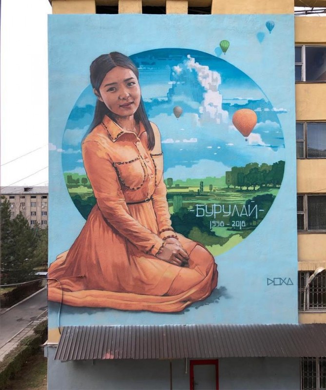 Бурулай училась в медицинском колледже в Бишкеке. Автор огромной картины - художник Сергей Келлер - рассказал, почему нарисовал девушку.