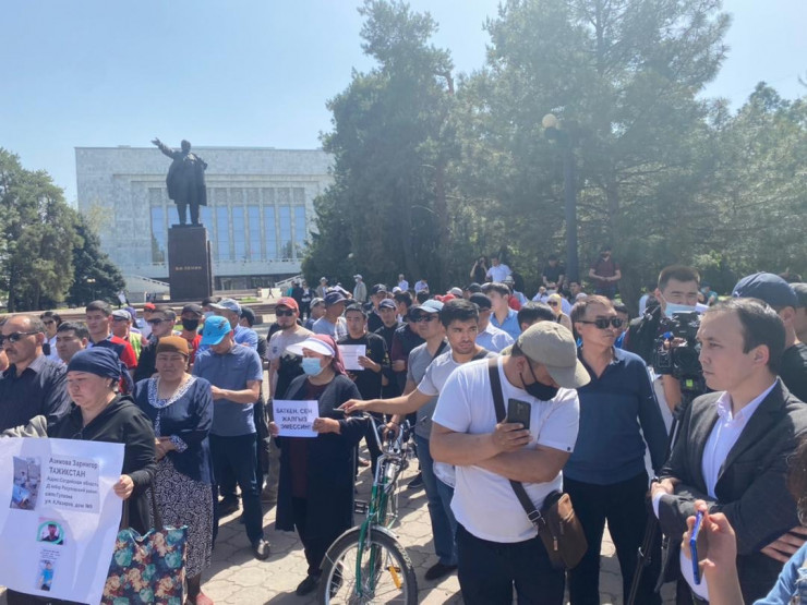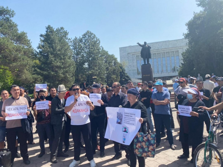 Между тем в Бишкеке у здания правительства собрались более 100 человек на митинг.