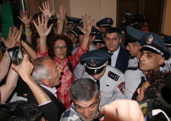 Демонстранты, требующие отставки мэра Еревана Тарона Маргаряна, в здании городской администрации. Фото ©РИА Новости